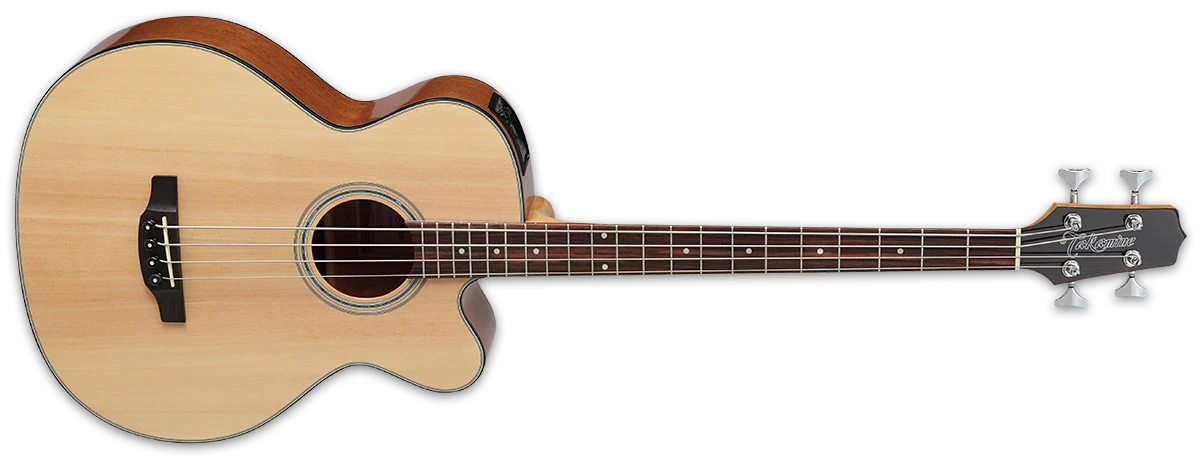 The GB30CE is a stage-worthy acoustic/electric bass guitar that features solid-top construction, a soft Venetian-style cutaway and a superior-sounding Takamine electronics system. Ready for any performance situation, the GB30CE features a solid spruce top and mahogany back and sides that produce a rich, resonant sound. The slim mahogany neck and 16″-radius rosewood fingerboard provide great feel and playability, while the onboard Takamine TK-40B preamp system gives you a built-in tuner, three-band EQ and gain controls, mid-shift control, bass-boost switch and EQ bypass switch for the ultimate in versatility and sound quality. Other great features include a dovetail neck joint, synthetic bone nut and bridge saddle, rosewood headcap, pearl dot fingerboard inlays, abalone rosette, chrome die-cast tuners and a beautiful gloss finish.