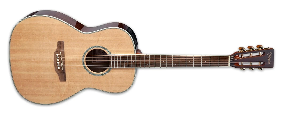 This great New Yorker sized guitar has a cool retro vibe with its cool old-school slot headstock and gloss natural finish. The solid spruce top and black walnut back and sides give this guitar a clear tone with sweet midrange and enhanced fundamental tones. This guitar will record beautifully, and will also go to the stage effortlessly thanks to Takamine’s renowned TP-4TD electronics.