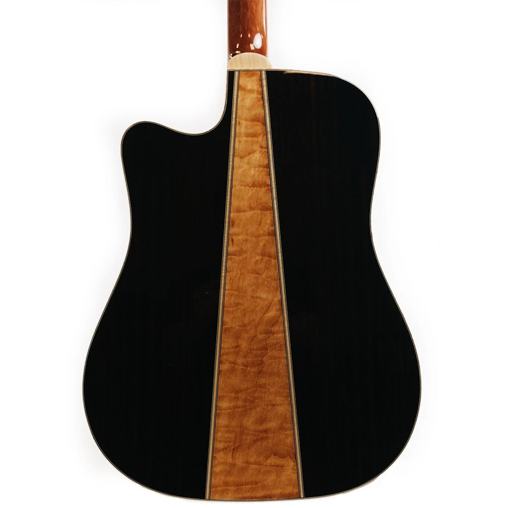 A distinguished acoustic/electric dreadnought guitar with a refined and contemporary look, the GD93CE features a solid top and special back construction, giving it an upscale feel and distinctive sound. For players seeking stage-worthy features and an uncommon look, the GD93CE features a solid spruce top, rosewood sides and a beautiful 3-piece rosewood/quilt maple back. The slim mahogany neck and 12″-radius bound rosewood fingerboard provide great feel and playability, while the onboard Takamine TK-40D preamp system gives you a built-in tuner, 3-band EQ and gain controls, mid-contour switch, notch filter and EQ bypass switch for the ultimate in versatility and sound quality.