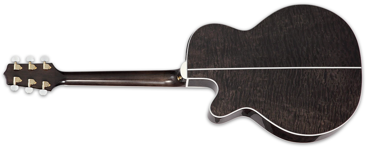 This NEX model is the latest addition to Takamine’s G Series. It features a solid spruce top and beautiful quilt-maple back and sides. The maple neck is capped with a rosewood fingerboard with striking oval pearloid inlay patterns. The pickguard is adorned with a “Grass Flower” pattern over a black background. This guitar features Takamine’s ever-reliable TP 4DT electronics, delivering stellar stage performance.