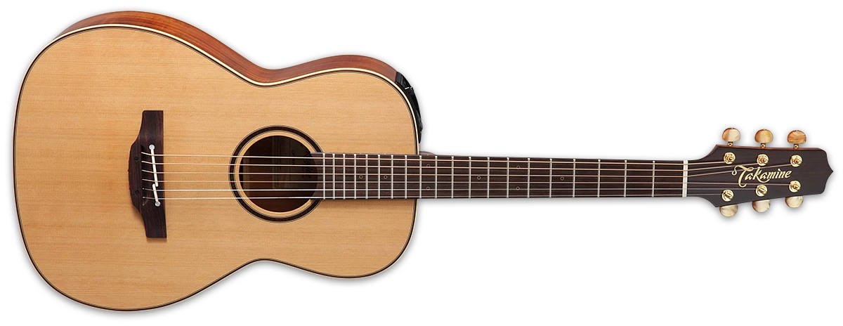 This great NewYorker sized model is the latest addition to the Pro 3 Series of guitars from Takamine. The CP3NYK has a 12-fret neck joint to take full advantage of the small new yorker body. Small body guitars create focused notes that are full of “fundamental”, and lighter on overtones. This makes them popular for fingerstyle. This model has a red cedar top, paired with back and sides of beautiful Hawaiian koa. Koa ia a silky tonewood that combines the sheen of rosewood with the syrupy mids of mahogany. This guitar features natural wood inlays and rosette, gold hardware, and takamine’s legendary electronics.