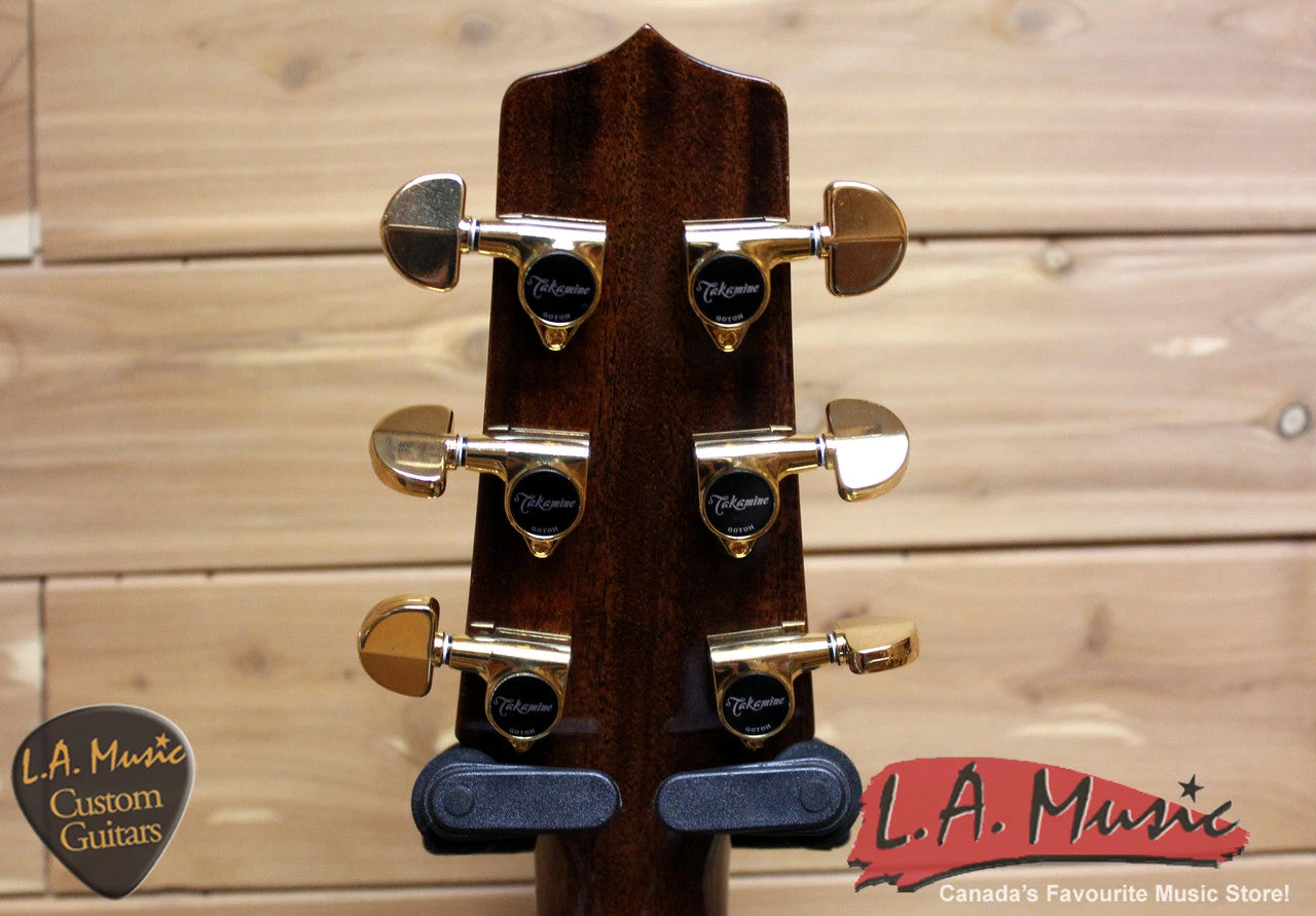 Other performance-enhancing features include Takamine’s asymmetrical neck profile – which is slightly thinner on the treble side so that it fits the natural shape of your hand, resulting in a comfortable feel and improved playability. The split bone saddle provides more accurate intonation, while bridge pin positioning optimizes the break angle to improve sustain and presence.