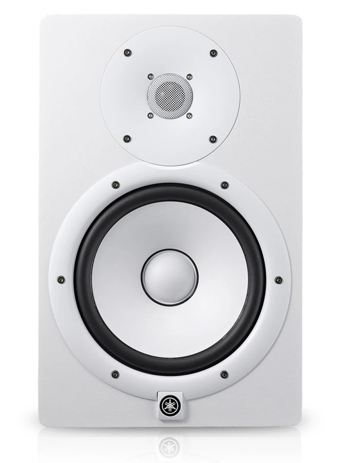 Yamaha HS8W 8″ Powered Studio Monitor White The Yamaha HS8 Powered Studio Monitor yields remarkably flat response from an 8 inch and 1 inch tweeter that have been redesigned by the engineers at Yamaha to deliver uncompromising response so you can perfect your mixes! The HS8 active monitor is ideal for studios that want accurate low end response without an additional sub. Professional and hobbyist producers and musicians all over the world love Yamaha HS series monitors because of their flat response that doesn’t boost any frequency. The bottom line is, once you get the mix to sound good on these, it will sound good anywhere! Features Speaker type: 2-way bi-amp powered studio monitor Frequency Range (-10dB): 38Hz – 30kHz Woofer: 8 inch cone Tweeter: 1 inch dome Crossover: 2kHz Output power: 120W (LF:75W, HF:45W) I/O connectors: XLR3-31 type (balanced), PHONE (balanced) Cabinet material: MDF Dimensions (WxHxD): 9.8 x 15.4 x 13.1 inches Weight: 22.5 lbs.